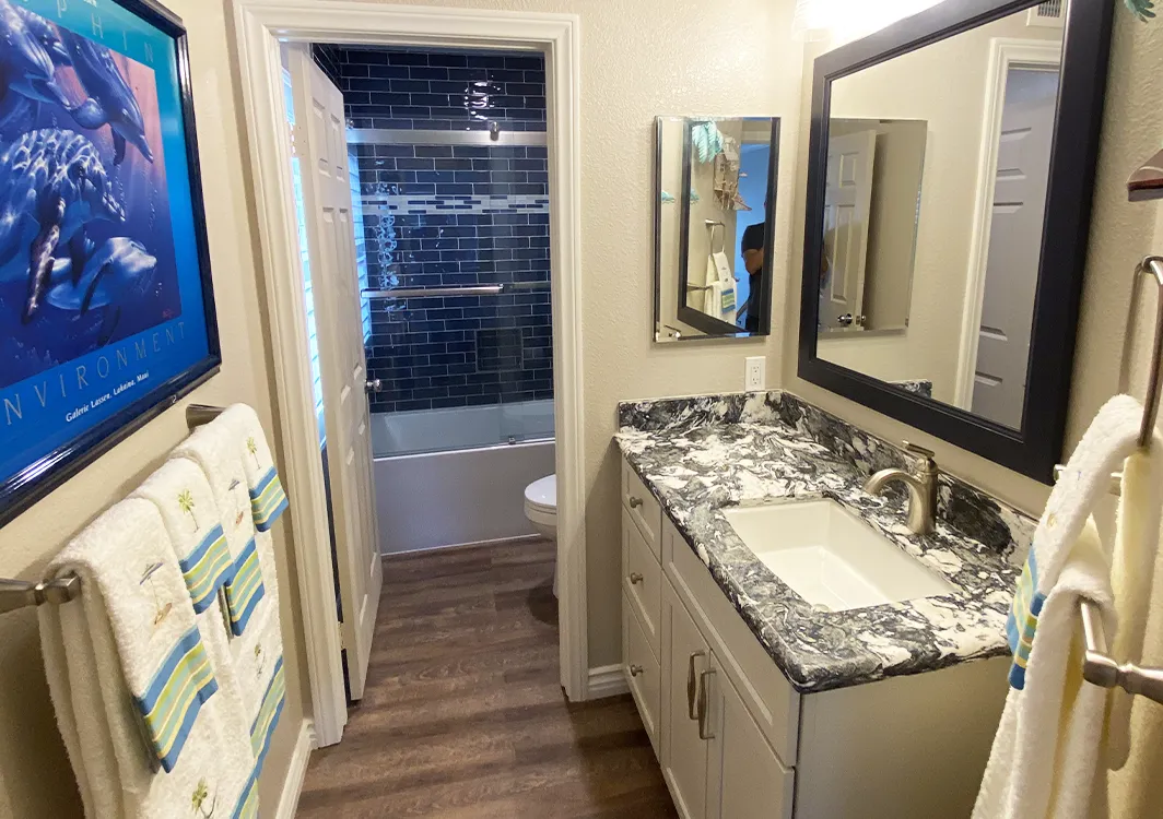 Laminate countertops start to soak up water after a while and the tile in your bathtub goes from looking decent to being covered in soap scum. If this is sounding familiar, then a refresh to your bathroom is the perfect solution.